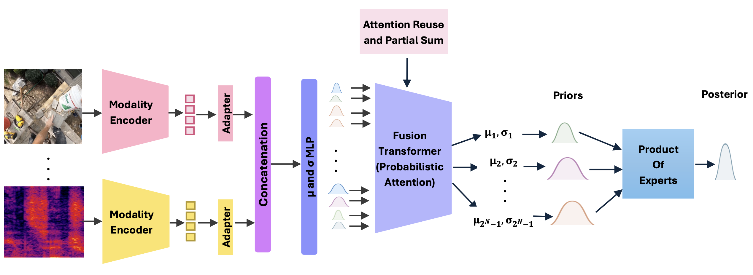 We propose PMBD, a probabilistic multimodal learning framework that addresses multiplicity, misalignment, and noise in multimodal data using a novel Bayesian Disagreement loss and Product of Experts fusion. It also introduces an efficient attention reuse algorithm and a Probabilistic Attention mechanism (PMBD-PA) for fine-grained token-level uncertainty quantification.